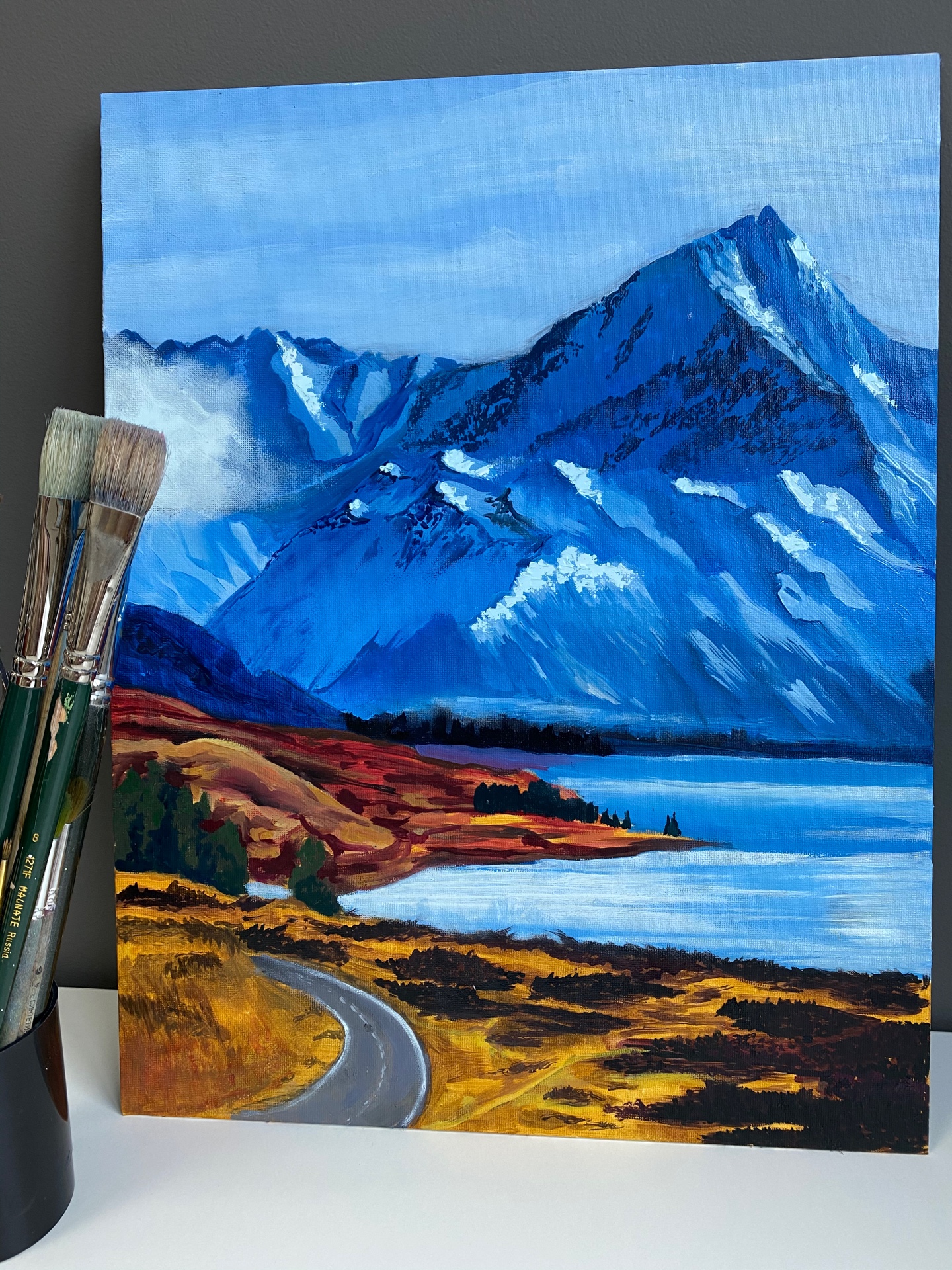 Изучаем технику, которая включает в себя нанесение на холст базового цветного слоя, подмалевок, слои светлых выбеленных участков и полупрозрачной краски поверх. Таким образом, разделяем работу с тоном и цветом на два отдельных процесса и прорабатываем живописное полотно
