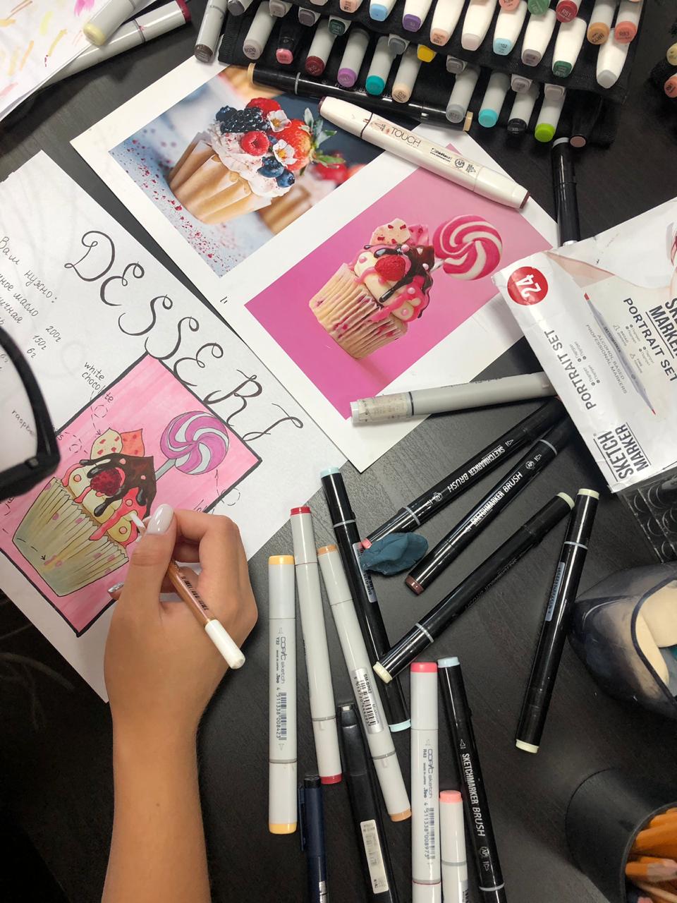 На этом занятии делаем правильную подборку оттенков, работаем маркерами.